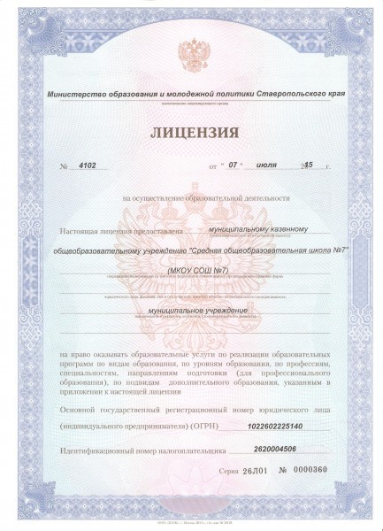 | Полное наименование образовательной организации* | Муниципальное общеобразовательное учреждение «Средняя общеобразовательная школа № 7» с. Варениковское, Степновского муниципального округа Ставропольского края |